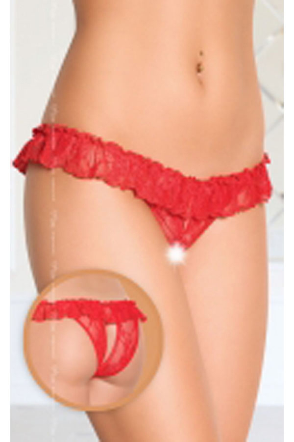 Zenske gagice sa otvorima napred i nazad u crvenoj boji. Velicine: SM i ML.
